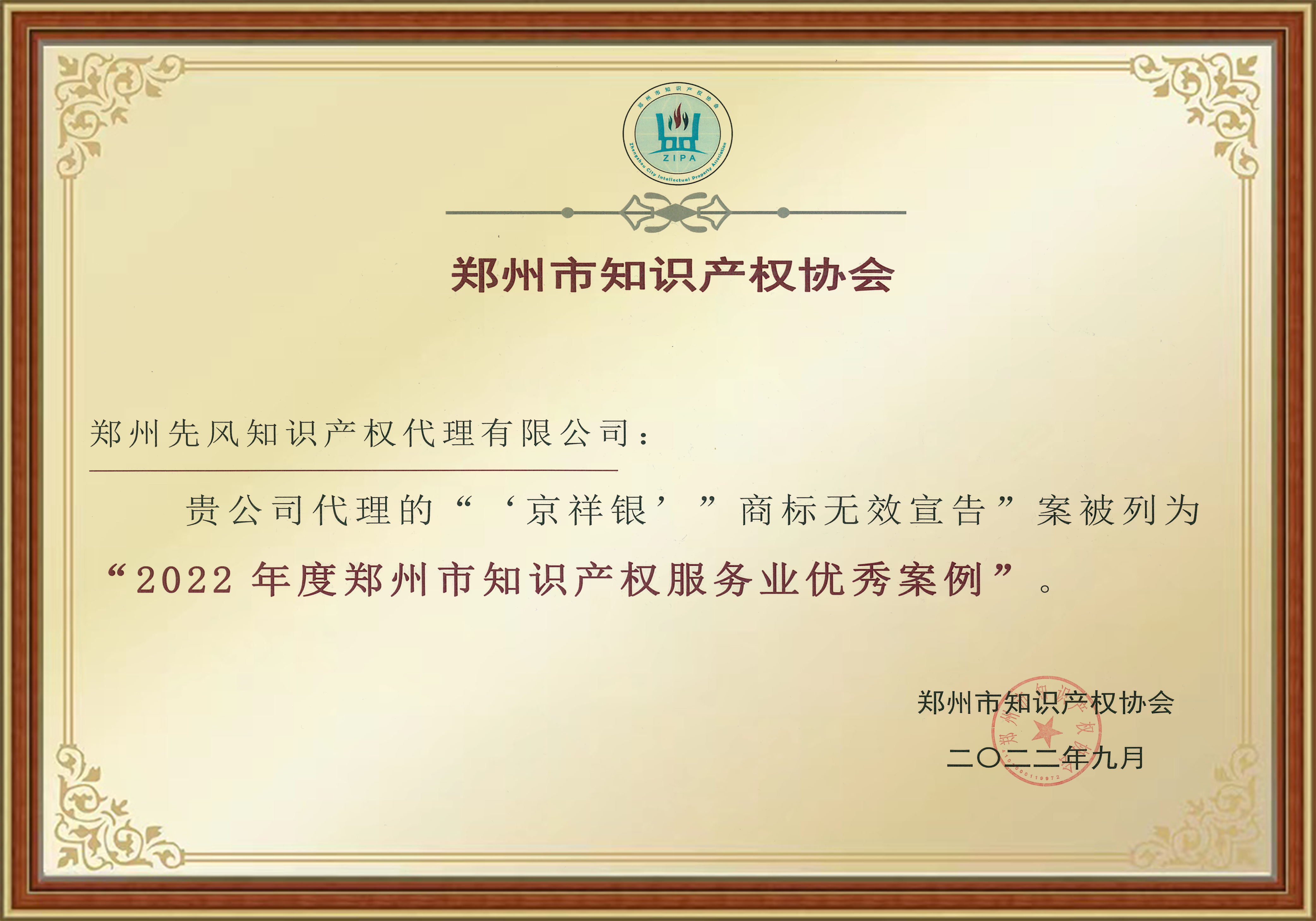 河南鄭州先風(fēng)知識(shí)產(chǎn)權(quán)代理有限公司被評(píng)為4A級(jí)代理機(jī)構(gòu) 中國(guó)商標(biāo)代理600強(qiáng)