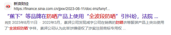 網(wǎng)紅遮陽(yáng)品牌“蕉下”就遇到過“全波段”商標(biāo)的維權(quán),但因不認(rèn)定商標(biāo)性使用,而順利過關(guān)。